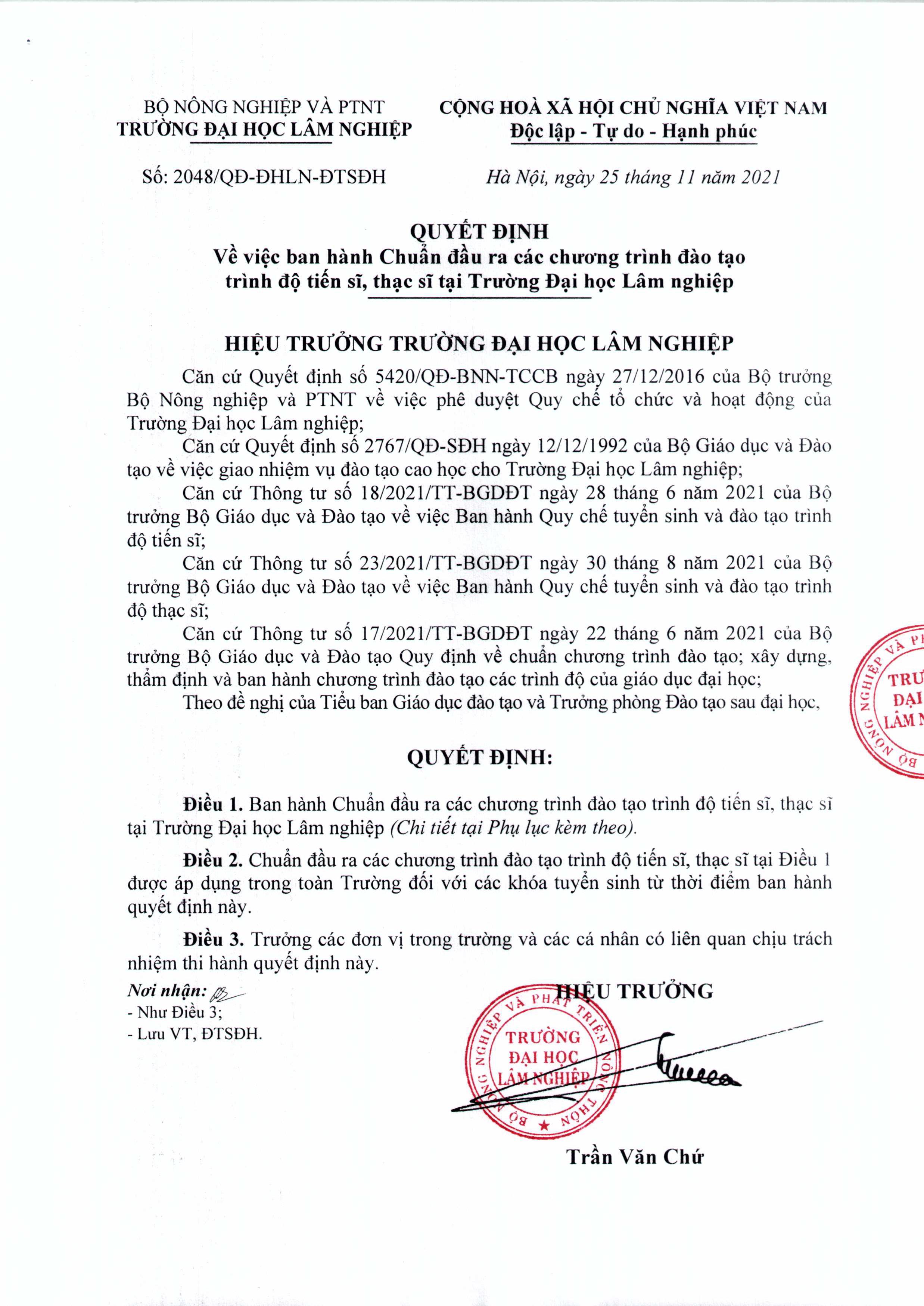 Nghiên cứu sinh (NCS) Khoa Quản lý tài nguyên rừng và Môi trường, Trường...