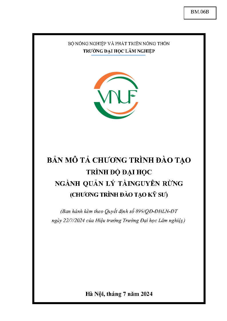 Quyết định Số 899/QĐ-ĐHLN-ĐT Về việc ban hành Bản mô tả chương trình đào...