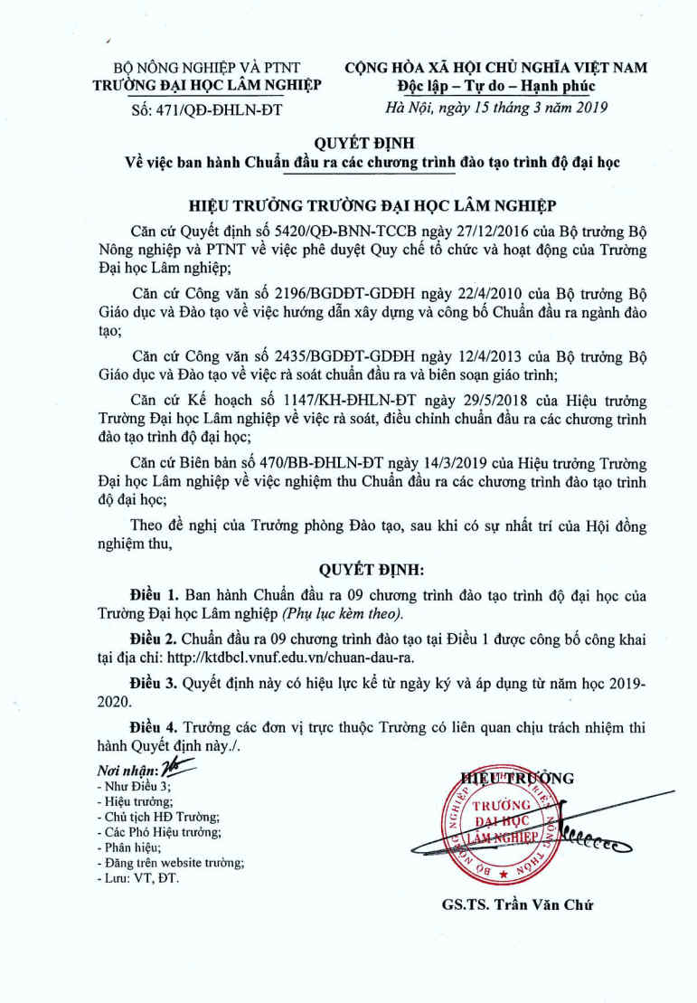 Quyết định số 471/QĐ-ĐHLN-ĐT ngày 15/3/2019 của Trường Đại học Lâm nghiệp...